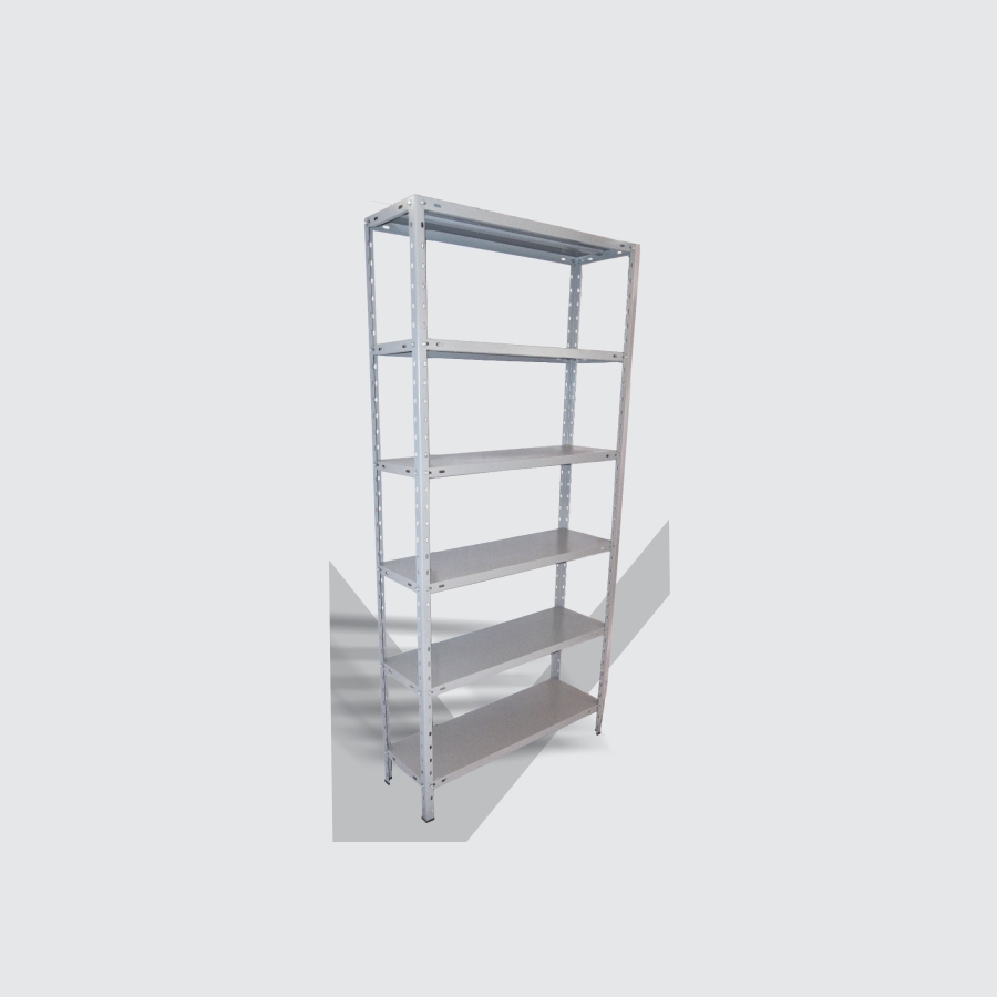- 3, 5 ou 6 prateleiras com reforço interno, parafusos zincados brancos e sapata protetora de umidade